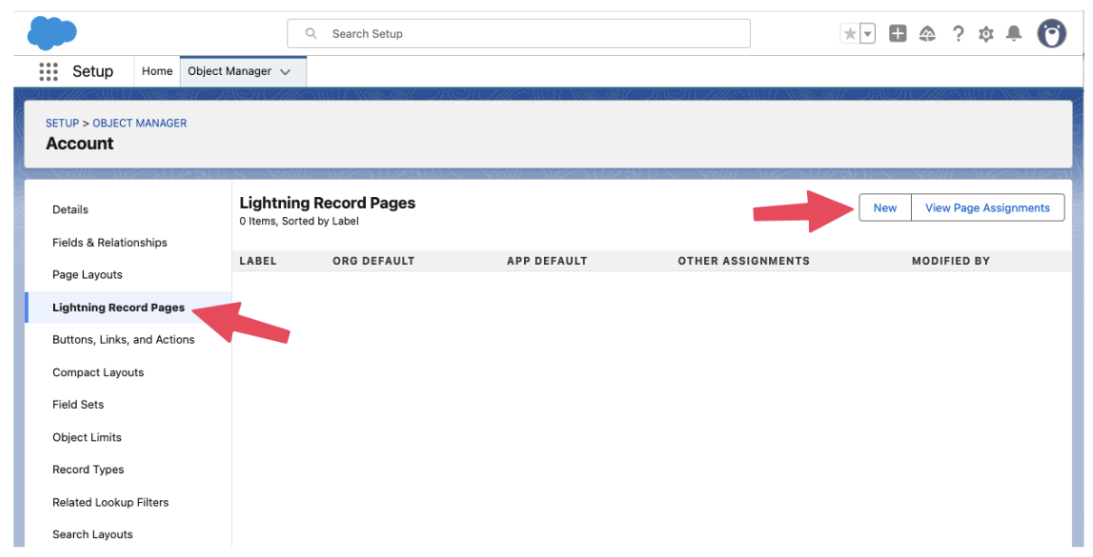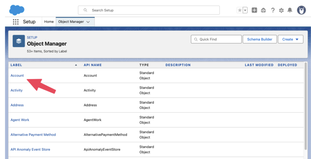 The next step is to add the Credit Pulse Lightning Web Component to your account views. Go to Setup and then to “Object Manager” and click on the Account object.